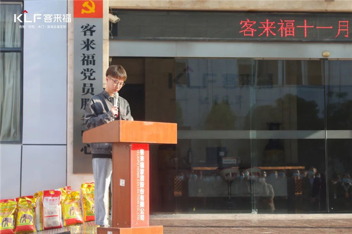 大會伊始,進(jìn)行的第一項是升國旗奏國歌儀式,在飄揚的旗幟下,客來福全員進(jìn)行企業(yè)價值觀宣讀,這是價值觀的傳遞,更是勞動人民不斷奮進(jìn)的精神延續(xù)。